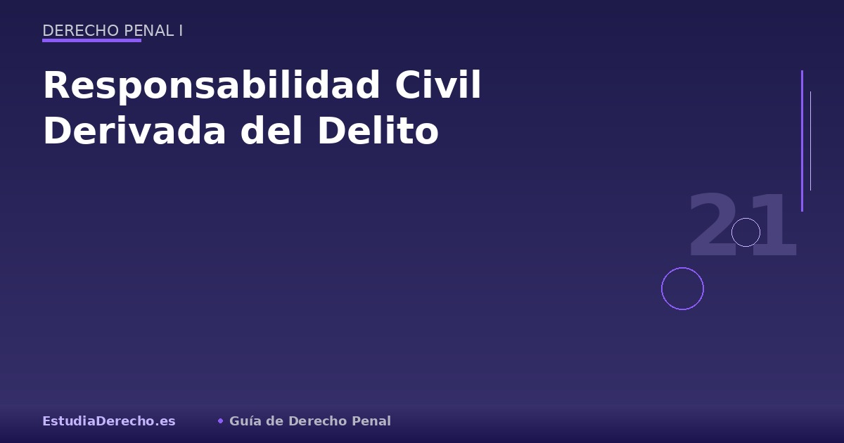 La comisión de un delito genera, además de responsabilidad penal, responsabilidad civil para reparar los daños y perjuicios causados. Se regula en los artículos 109 a 122 del Código Penal. Aunque es de naturaleza civil, puede ejercitarse dentro del proceso penal (acción civil ex delicto).